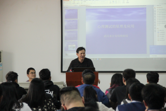 首先,胡向阳院长代表学院师生对蔡晓东中队长的到来表达了衷心感谢,并简要向与会同学介绍了蔡队长的经历。作为华中理工大学毕业的高材生,蔡队长自进入公安队伍以来,凭借其在心理测试方面的卓越能力和认真负责的工作态度,先后参与破获省内外多起大案要案,受过武汉市公安局多次奖励,被众多媒体称为“武汉市专业测谎第一人”。