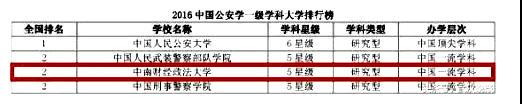 依据其最新2016中国大学学科排行榜,我校公安学、法学都位居全国前列。其中公安学位列全国第二,法学位列第六。