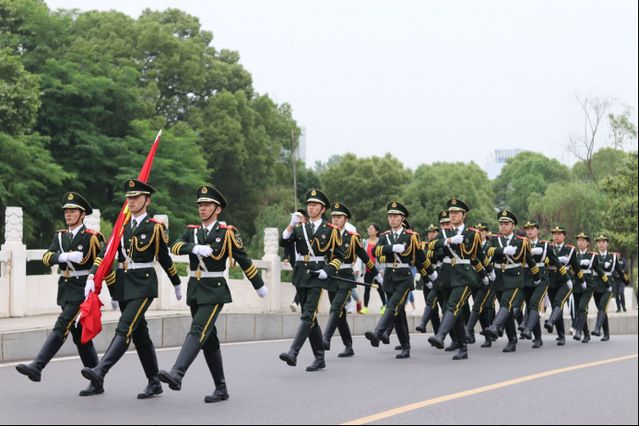 5月7日上午七点四十,队员们在文治楼前集合,进行升旗前的最后一次排练,整装待发。八点二十,队伍从文治楼前准时出发。气势浩荡,引来不少路人驻足观看。正步踢过青云桥,八点半,中原楼前准时奏起国歌,国旗缓缓上升,国歌终了,国旗随风飘扬,飞行在上空的航拍器记录下了这一庄严过程。
