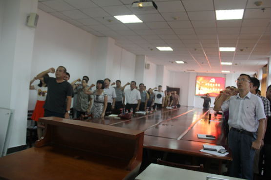 最后,我院全体教工党员面向党旗庄严宣誓,并按时、足额交纳了9月份党费。
