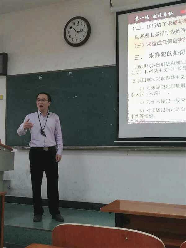 23日下午,专家组专家对曾大庆老师主讲的《刑法学》(总论)进行听课考察,曾大庆老师讲授的内容是犯罪的未遂部分。听课专家认为,曾大庆老师准备充分,讲课认真,在讲授中注意理论讲授与实践案例的结合,使本枯燥乏味的理论变得生动有趣;在课堂上注意调动学生积极性,互动较多,效果良好,值得肯定。
