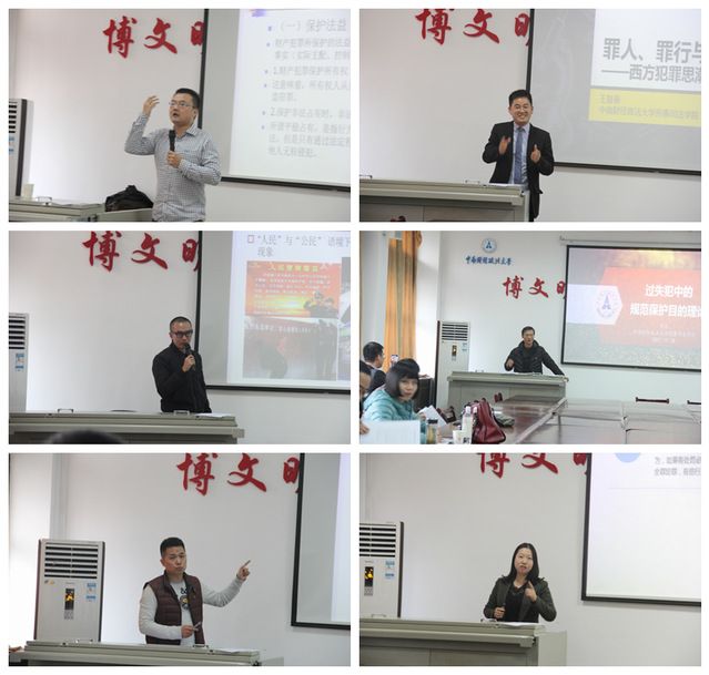 比赛中,六位老师分别配合自己精心制作的课件做了精彩的讲授。其中张正宇老师和王敏敏老师分别讲授了取得性财产犯罪中的共识性知识和危险驾驶罪的概念及构成要件,将枯燥的书本知识与多个案例结合,使原本生硬的法律概念生动化、具体化;周睦棋老师讲授了警察现象与社会形态;袁建伟老师以上海摔孩案为例详细讲述了警察危机公共关系的处理,王复春老师通过对西方犯罪思潮的回顾与审视来讲授罪人、罪行与犯罪互动;李波老师重点讲授了过失犯罪中的规范目的理论。老师们有对概念的深入剖析,同时也联系了典型案例以及社会热点;既生动形象,亦不失严谨。