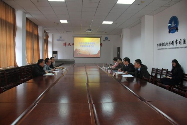 (通讯员 梅功雪)2017年12月1日上午8:30教务部部长李志生、副部长王良圣、陈国威老师一行到永利官网进行调研。调研会在文治楼二楼会议室举行,永利官网院长胡向阳教授、副院长董邦俊教授、警事科学系主任董少平教授、副主任林慧青老师、刑法学系老师杨柳参加了此次调研会。会议由董邦俊副院长主持。