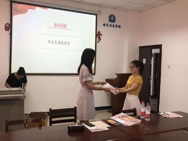 另外,2018届毕业生离校在即,彭老师针对毕业生暑期存在的户档迁移、就业派遣、暑期政审等事宜,一一为同学们作出解答和安排。彭老师表示,为方便毕业生办理就业、政审事宜,学院暑期也安排专人值班,并建立毕业生服务微信群。最后,部分同学还就自己的毕业手续问题咨询老师,老师均详细作出回答,并祝愿同学们“不忘初心、砥砺前行”,成为有理想、有担当、有操守的新时代接班人。