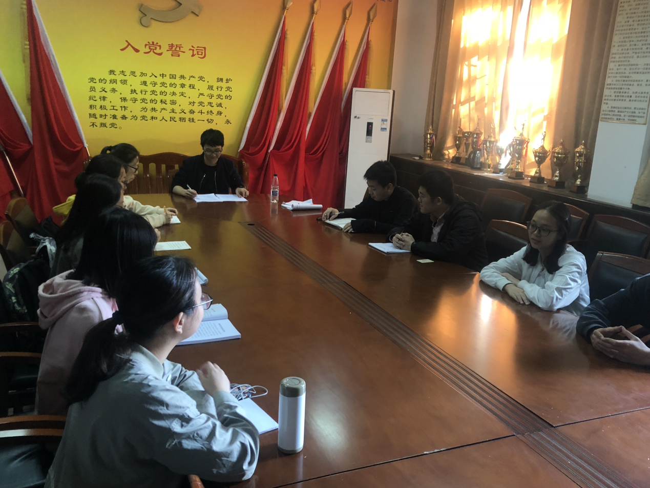 (通讯员 李昌鑫)11月1日中午,永利集团88304官网本科2016级学生党支部在文治楼一楼会议室开展以“增强政治自觉,坚决贯彻落实党中央关于开展脱贫攻坚战专项巡视的决策部署”为主题的党日活动,认真学习了《中共中央国务院关于打赢脱贫攻坚战的决定》、《中共中央国务院关于打赢脱贫攻坚战三年行动的指导意见》、《湖北省脱贫攻坚小组关于打赢脱贫攻坚战三年行动的实施意见》等文件。永利集团88304官网本科2016级学生党支部全体预备党员参加了此次活动,本次活动由党支部书记卓张鹏老师主持。