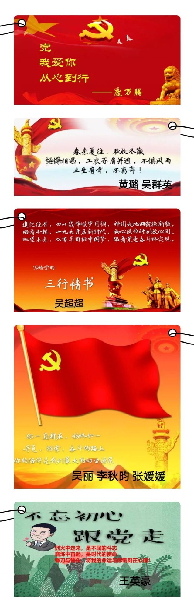 参赛作品各具一格,立意新颖,参赛者们纷纷带着对党的不同理解与热爱,用简练精致的三行语言写下了献给党的赞歌,表达出对党和国家的敬爱和赞美之情,用情真意切的语句讴歌了祖国的伟大,用真挚深厚的感情、独特新颖的三行板式表达了对党的衷心祝愿,诠释了对祖国繁荣昌盛的美好期冀。一份份独创的三行情书作品赞颂了党的光辉历程和丰功伟业。