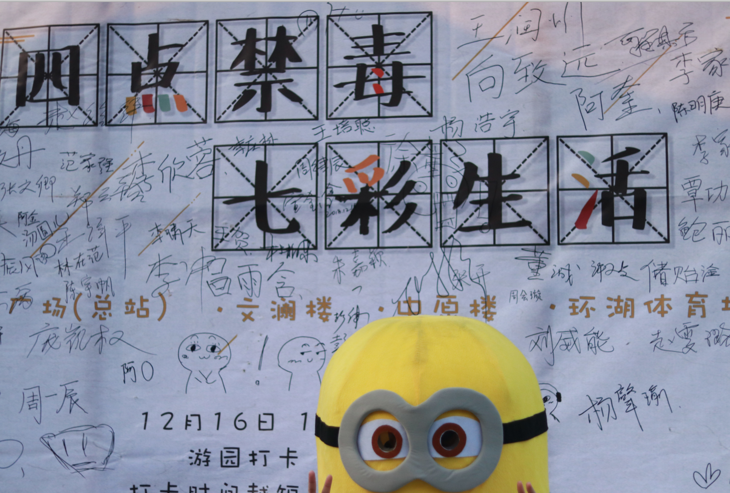 新闻网讯(学生记者 贾俊杰 骆其官)在永利官网各位领导、老师的高度关切和同学们的积极筹备下。12月16日下午,永利集团88304官网志愿者协会以五羊广场为主会场举办“四点禁毒 七彩生活”禁毒主题游园会。以独特新的方式将禁毒这一严肃话题“融教于乐”,吸引了大量同学的踊跃参加。在此前举办的广播节目“禁毒刑声”取得热烈反响之后,刑司志协趁热打铁,再次举办禁毒游园会,将12月打造成了主题禁毒月。活动伊始,本次活动的总负责人、永利官网志愿者协会项目策划部部长谢世奎主持并发表了演讲,他向同学们仔细阐述了当今中国大学校园中刻不容缓的禁毒形势。然后又向同学们详细地介绍了本次游园会游戏规则。随着比赛的开始,同学们迫不及待地参与到了活动中。本次游园会以打卡计时的形式呈现,四个打卡点分别是五羊广场,中原楼,环湖体育场和文澜楼。在每个打卡点各自设置了不同的游戏,在游戏中穿插着各种各样的禁毒知识。