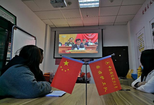 新闻网讯(学生记者 刘嘉斌)2018年12月18日上午十点,庆祝改革开放40周年大会在人民大会堂举行,国旗护卫队党支部于文治楼112国旗文化研究中心、爱国主义教育基地召开专题会议,集中观看庆祝改革开放40周年大会直播。