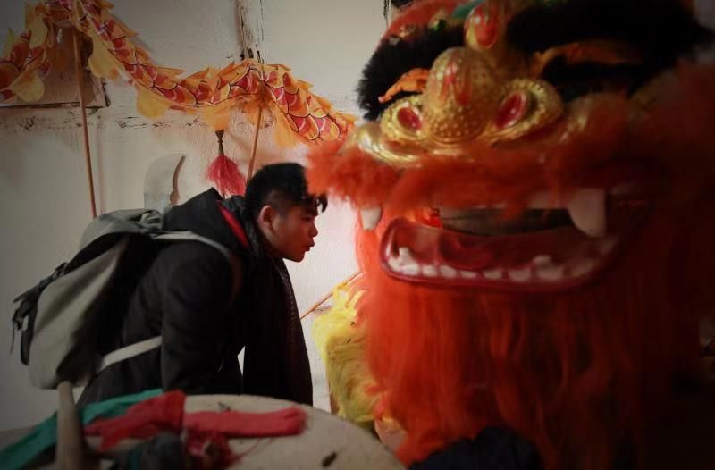 随后,调研团队又前往魏河村民俗馆参观,民俗馆中摆放着舞龙、舞狮,“在村子里,每年重大节日时都会有魏河村民间艺术团的成员进行舞狮表演的身影。”