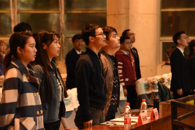 活动伊始,由主持人介绍了到会的老师和活动的组织人员,同学们热烈地鼓掌表示欢迎和敬意。介绍结束后,全体起立奏唱团歌。在庄严的歌声下,全场肃立,庄重唱出崇高的歌声。接下来是各位团支部代表依次对自己所属团支部的团日活动进行了展示,并且对未来团日活动的规划进行了详备地介绍。