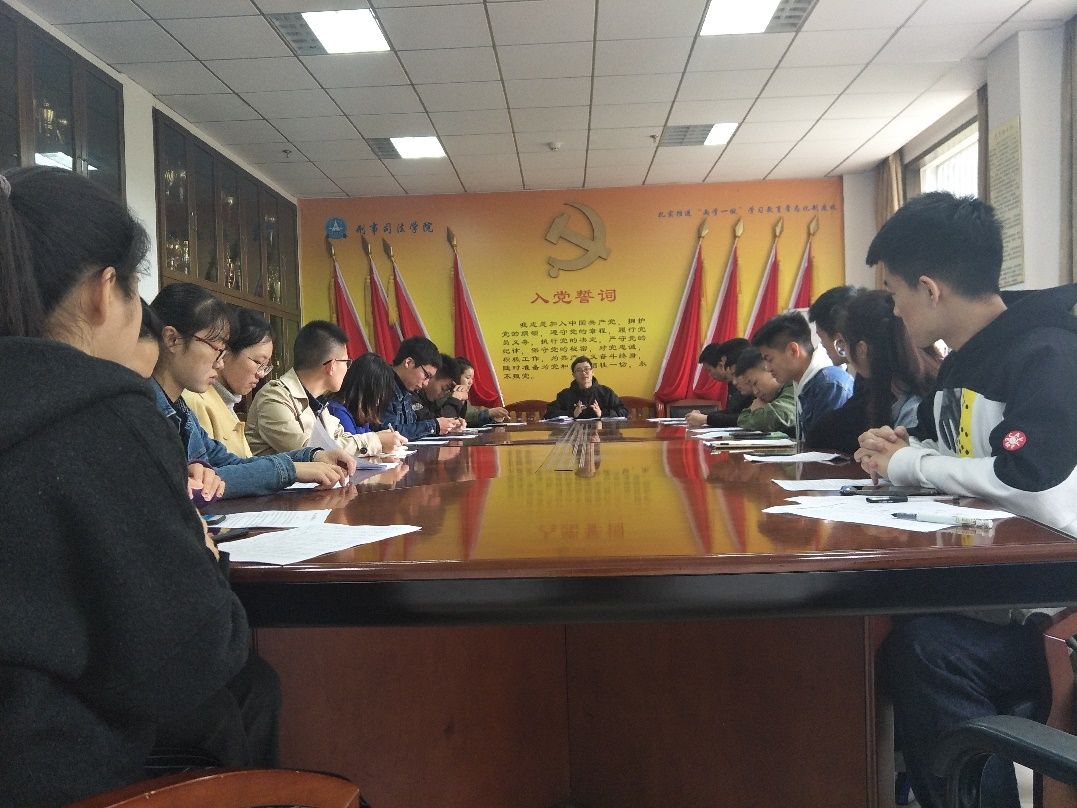 (通讯员 朱嘉颖)4月11日中午,我校国旗护卫队党支部在文治楼一楼会议室召开四月份支部主题党日活动。国旗护卫队党支部16、17级预备党员、发展对象和积极分子参加了此次活动,国旗护卫队党支部书记卓张鹏老师出席此次支部党日活动。