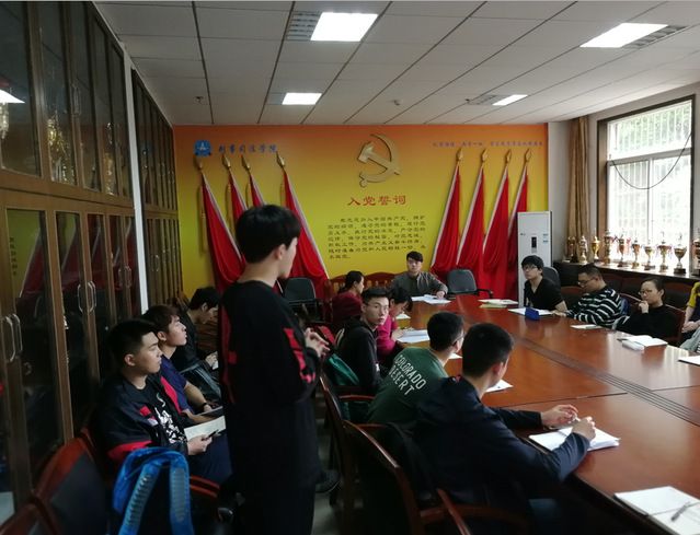 在对于学习贯彻习近平总书记关于思想政治工作重要论述精神方面,郭老师在带领大家学习了《习近平总书记关于青年学生成长成才重要论述摘编》之后,概括性地总结出做“德智体美劳”全面发展的新时代社会主义建设者与时代接班人的要求,并于此对党支部成员提问:如何在现阶段做好定位,理清自我的发展与规划。党支部成员对此展开激烈的讨论,治安班杨宇轩说道:在经过我校国际贸易双学位的学习之后,当前的个人定位已经逐渐清晰明了起来,那就是努力学习,认真学习外语,努力将来去国外进一步学习更加先进独特的技术与文化,并将其用于回报祖国,为祖国的建设事业奉献自己的力量。但是因此自己也要牺牲掉很多东西,经过之前与郭老师多次的谈话,现已决定今后减轻学生工作与娱乐的所占自我时间的比重,将重心放在学习与雅思方面。杨宇轩同学坚定的话语赢得与会人员的阵阵掌声。