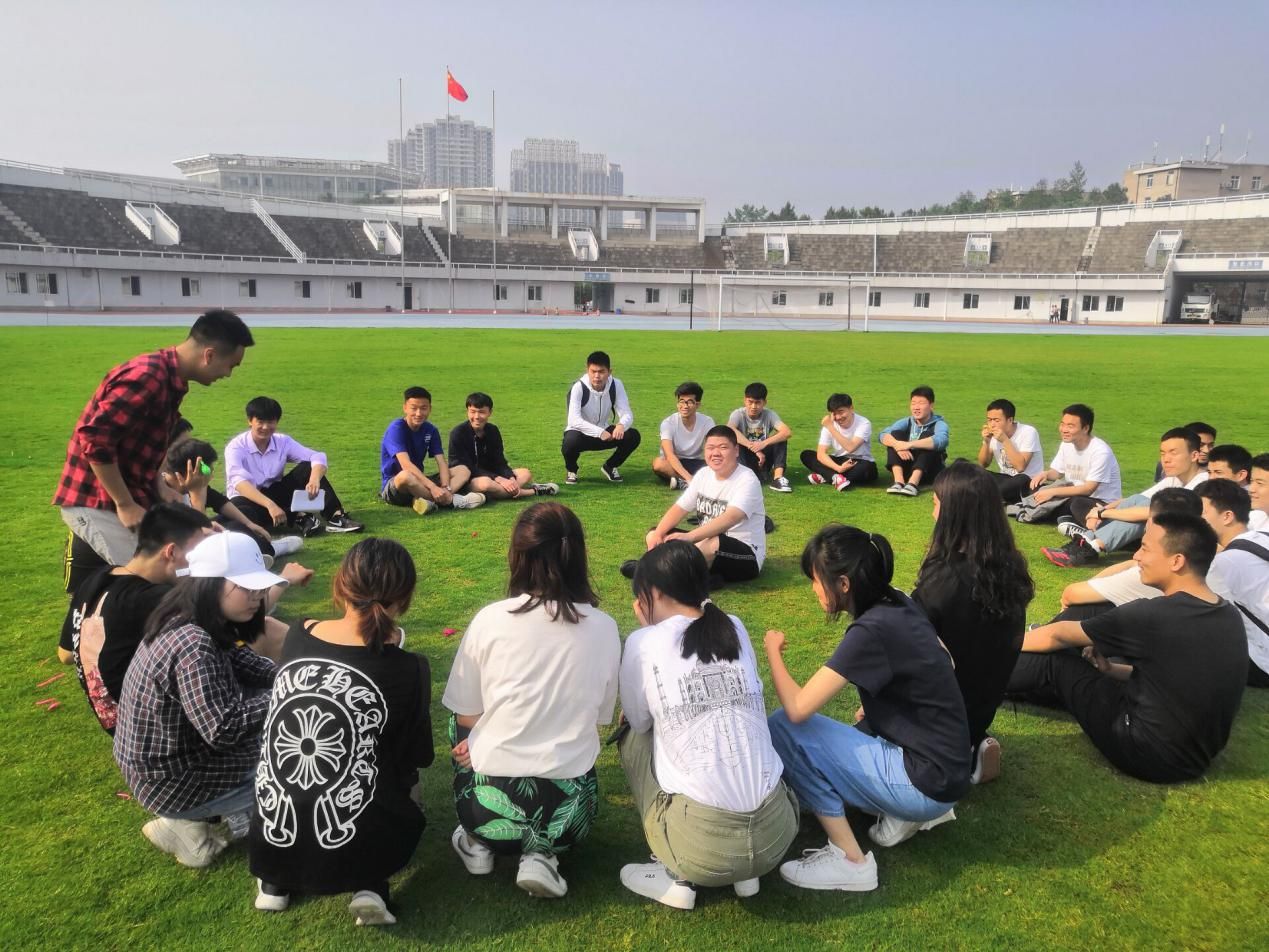 在开展完室内的班会后,主持人带领同学前往新体操场开展素质拓展活动。活动包括心心相印,坐地起身,解手链,击鼓传花。同学们积极参与,互帮互助,收获快乐。这促进了同学之间的相互了解,加深了其友谊,也使同学明白了团结的力量。