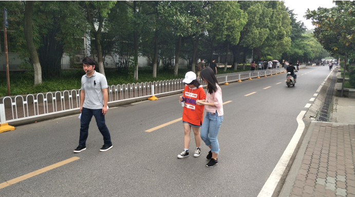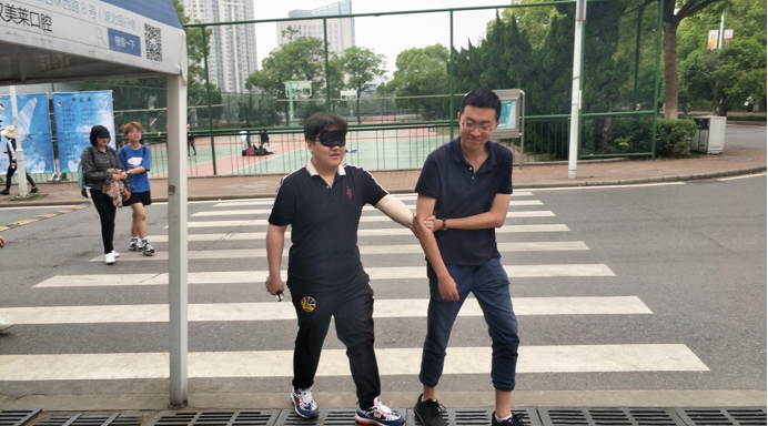 活动的规则为两两组成一组配对,一人是盲人,一人是聋哑人,两人合作下,从旧体出发,共同到达目的地——希望之门(文治一楼会议室)。途中,同学们会遇到各种挑战,比如台阶、马路、车辆、周围人好奇的眼光等等。