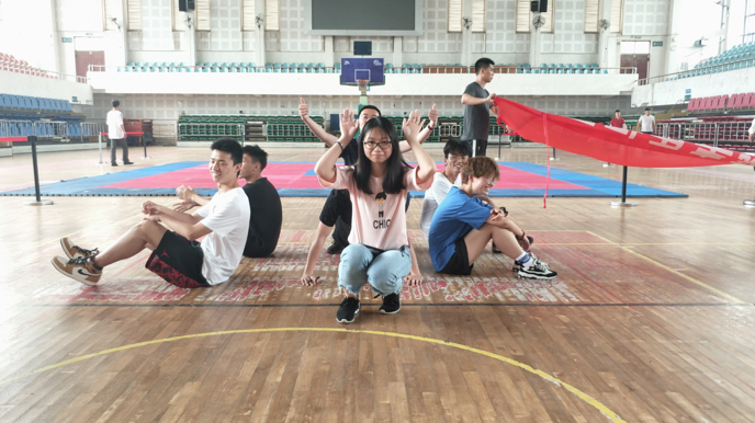 分好组后就进行“手足情深”的游戏,七个人围成一个圈,根据抽到的卡片提示和左右两旁的完成指定动作,并坚持五秒,率先完成的一组获胜。最终我们的“刑司人民真争气队”取得了最终胜利。
