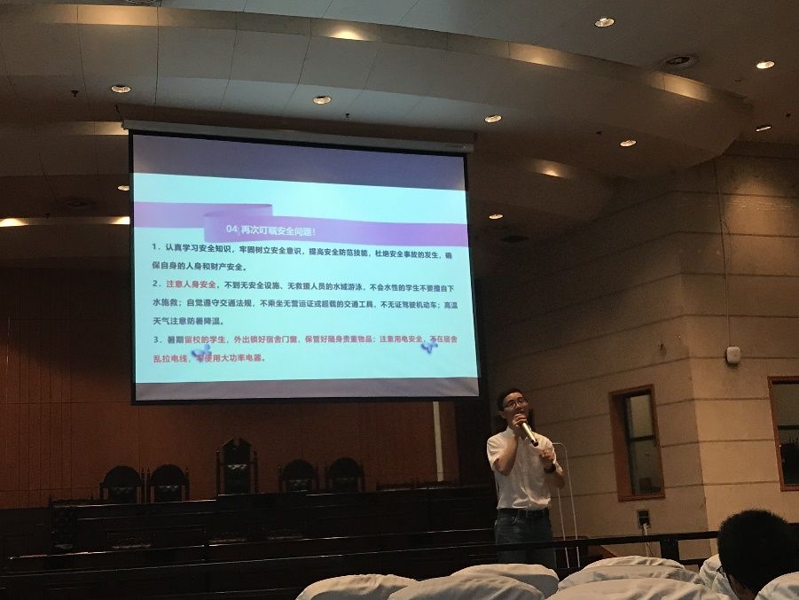 紧接着,卓张鹏老师强调了期末诚信考试的相关事宜,通过各种处分及典型“前车之鉴”提醒、警示同学们禁触校纪院规红线,并提示考试注意事项。暑期工作安排方面,重点强调了暑期留校学生管理问题,并让所有同学现场签署了《暑期安全责任告知书》。安全方面,卓张鹏老师提醒同学们时刻谨记人身、财产、交通、网络诈骗等方面的安全问题。