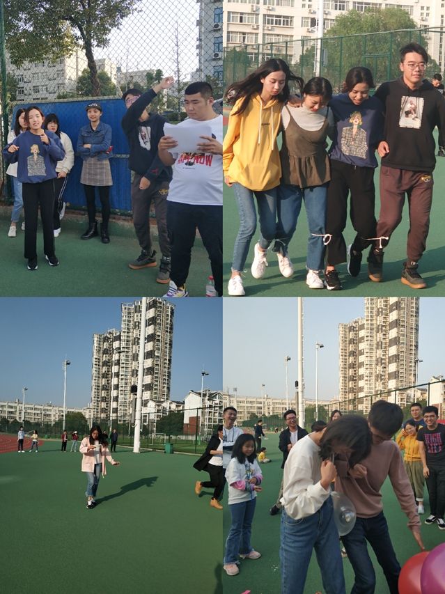 在经历了两轮游戏后,同学们渐入佳境,对后面的游戏更加配合。在四人五足项目中,各小组齐心协力,相互配合,迈着整齐统一的步伐,喊着响亮的“一二一”的口号,争分夺秒、齐头并进。“夹气球”环节队员之间相互配合,背靠背将气球传送至终点,最后挤爆气球。