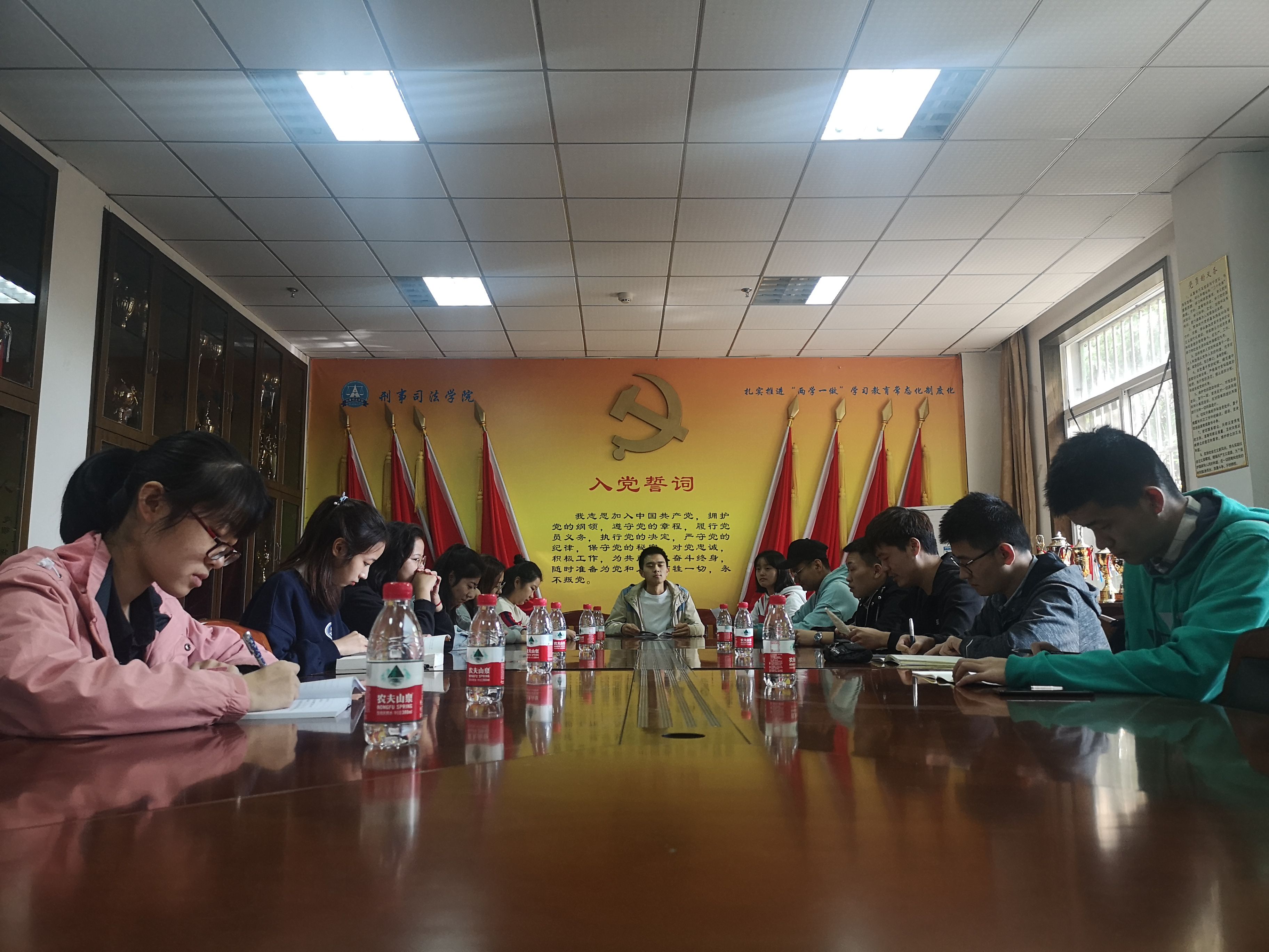 活动伊始,朱嘉颖带领红旗党支部成员重温入党誓词,回顾起点,铭记初心。随后,在朱嘉颖的组织下,与会成员自主学习了《中国共产党第十九届中央委员会第四次全体会议公报》《“一次具有开创性、里程碑意义的重要会议” ——六部门负责人权威解读党的十九届四中全会精神》等文件,领悟相关文件和会议精神,并展开讨论。17级发展对象刘嘉斌说道,作为新时代的大学生,要增强“四个意识”,坚定“四个自信”,做到“两个维护”,紧紧围绕在党的身旁。党的十九届四中全会是一次具有开创性、里程碑意义的重要会议,党的历史上首次用一次中央全会专门研究 国家制度和国家治理问题。国旗护卫队426号队员覃盼越也发表了自己的看法,他认为中国在近一段时间里面对的挑战会更多,作为新时代大学生,要在这一充满挑战的时期中,“不忘初心、牢记使命”,不断提高、完善自身,争做大学生排头兵。