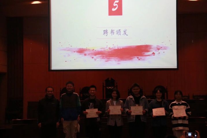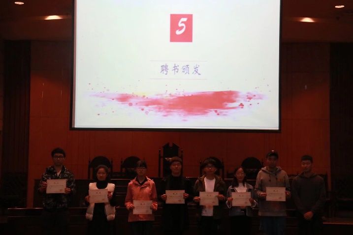 一个队伍的繁荣和发展离不开在队伍中默默奉献的管理者们,他们不怕苦累,不惧困难,敢于上前,勇于挑起队伍发展建设的重担,是队伍中不可或缺的一部分。在过去的一年里,全体第十七届队伍负责人为队伍的发展做出了斐然的贡献,万里雪书记对他们的工作做出了肯定并为他们颁发聘书。队列动作是队伍发展的重中之重,教练团功不可没。在过去的一年里,17级教练团成员牺牲自己的休息时间,强化队员队列动作,提高队员动作水平,第十六届队长胡纪翔师兄对他们为队伍发展做出的贡献表示感谢并为其颁发聘书。