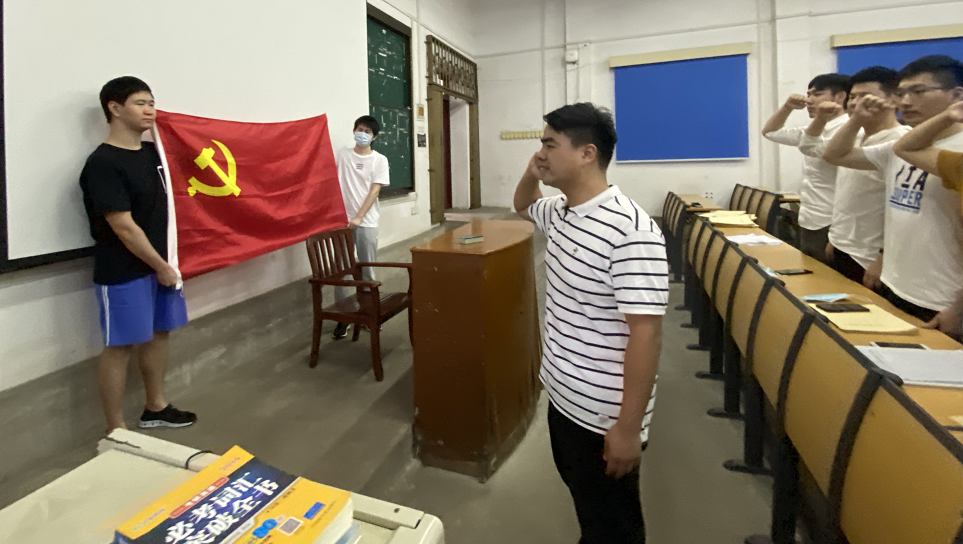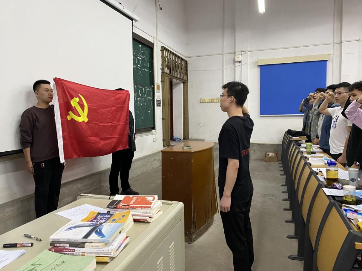 随后,支部大会举行了第二批预备党员入党宣誓仪式,支部书记郭青川老师强调,入党宣誓是一名党员在加入中国共产党之时,对自己作出的严格要求,对党作出的自我保证,对人民作出的庄严承诺,党员同志要不断加强理论学习,思想、行动上入党,不断发挥党员先锋模范作用,争做一名合格的中国共产党党员。受疫情影响,58名预备党员入党宣誓延期到本次支部大会举行,由孙亚孟同志领誓,新党员面向党旗,举起右手,庄严向党旗宣誓,表达对党的忠诚、为共产主义事业奋斗终生的决心。孙亚孟同志表示,了解誓词、牢记誓词、维护誓词、践行誓词不仅是党对每一名党员的基本要求,也是当前加强党的建设、保证党的领导核心地位的需要,今后将做好表率,牢记初心和使命,以实际行动践行自己的誓言。