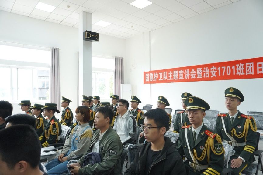 新闻网讯(学生记者 石玥 徐淇钰 罗悦华)11月5日上午十时,永利集团88304官网国旗护卫队宣讲会暨治安1701班团日活动于文清楼4楼会议室举办。永利集团88304官网学生工作部、人武部部长余小朋、永利集团88304官网党委副书记万里雪以及永利集团88304官网团委书记郭青川参加了此次活动。治安1701聂一雄担任这次活动的主持人。