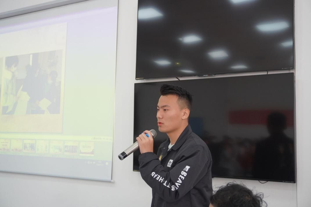 国旗护卫队主题宣讲团以“青春向党”作为主题,进行四个故事的分享,马一新作为国旗护卫队第449号队员首先进行“青春向党——我的选择与热爱”主题演讲,从申请加入国旗护卫队和申请入党时的经历讲起,介绍了他从选择到热爱的转变历程。紧接着国旗护卫队第445号队员林铭涵以“青春向党——红旗飘扬”为主题,通过列举生活中普通人爱护国旗、珍视国旗的实例,让大家领悟国旗的神圣性和具备的非凡意义。国旗护卫队第460号队员曹煜轩则以“青春向党——鸭绿江对面的故事”为主题,聚焦黄继光的英雄事迹,刻画了一个为国奉献的英雄人物。随后国旗护卫队第434号队员付裕以“青春向党——我的责任与担当”为主题,从个人的小切口出发,通过叙述五年来追梦的经历,展现了他渴望军旅生活、全力学习工作的形象。他认为国旗护卫队是我校最具军事化管理特色的组织,是我校爱国主义教育中的重要标志。他以国旗护卫队为家,以国旗护卫队为骄傲,把一件事做到最好,也始终不放弃自己的理想。身为国旗护卫队的一员,他将个人理想融入到一次次刻苦训练、完美的任务中和为队伍所做的贡献中,不懈努力,展现出勤恳务实的追梦精神。
