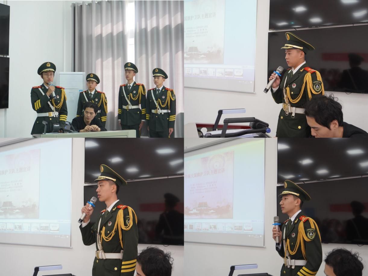 最后,学工部余小朋部长用习近平总书记的三封回信,分别寄托青年人的使命和担当,并送给了国旗护卫队和治安1701全体同学。
