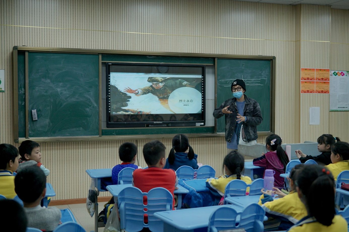 “我们当今的美好生活是怎么来的呢”,当小老师提出这一问题时,一位小朋友起身答道,“是许许多多革命先辈的牺牲换来的”,在场的人员无不鼓掌赞赏这位小朋友的发言。黑板上的一副图片,记录的是蒿草摇曳的草地。“我们平时可能被开水烫到时可能会大叫出来,但他被烈火焚身依然没有喊出哪怕一声。”当描述烈士邱少云牺牲时,许多小听众泫然欲泣,面色凝重,被战士坚定的意志和奉献精神深深感染。