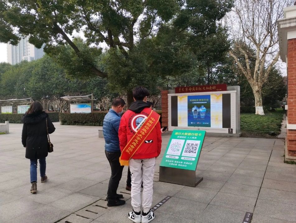 依照防控疫情要求,我队志愿者在工作人员指导下,于入口处组织游客扫码进馆,耐心帮助其解决遇到的问题。我队良好的形象以及认真友善的服务态度得到游客们的赞赏与表扬。