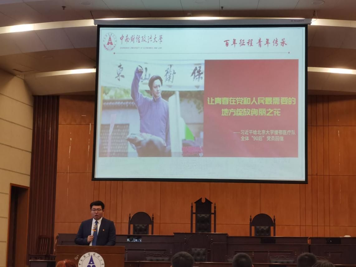 活动伊始,全体师生起立奏唱共青团团歌,模拟法庭(一)的气氛顿时庄严肃穆起来。奏唱团歌结束后,参赛选手依次上台演讲。参赛选手激情盎然地用一个个经典的故事,一句句经典的话语讲述了中国共产党和人民的奋斗历程。参赛选手的精彩演讲赢得了台下观众的阵阵热烈的喝彩声和掌声。各位参赛人员从不同角度论述了历史为什么选择了中国共产党、人民为什么选择了中国共产党,通过一个个历史瞬间,讲述了中国共产党为人民服务、不怕艰辛、吃苦耐劳的大无畏精神和广大优秀党员们崇高的奉献精神,帮助了同学们更好的理解党史,鼓舞了同学们悟初心,努力奋斗的决心。