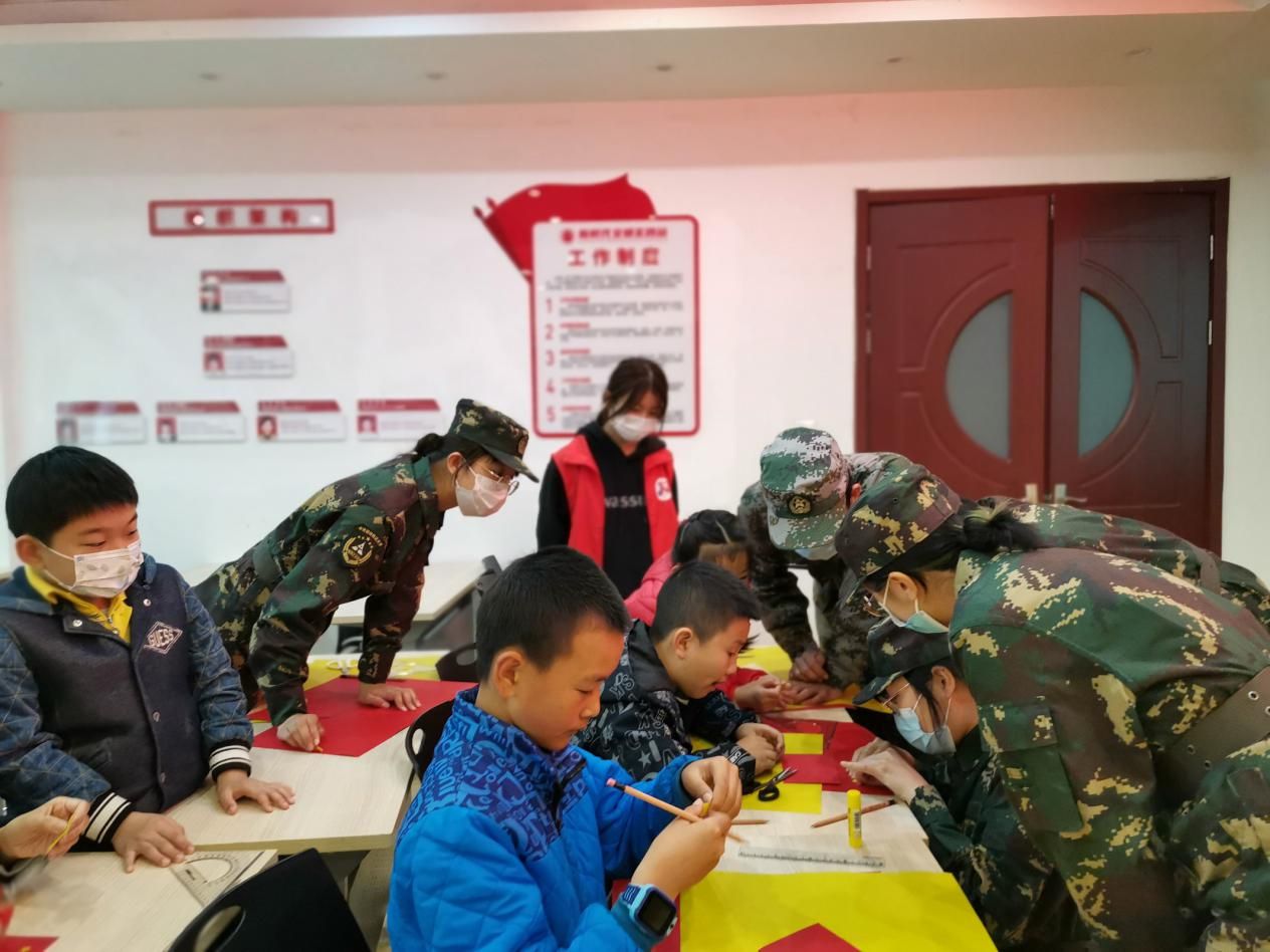 除了静态的知识灌输,活动也有实际的动手操作。青少年在青栀服务队和国旗护卫队队员们的帮助下用卡纸制作国旗,用鲜艳的红色和黄色,按照严格的比例进行裁剪粘贴。最后每人都手持自己制作的国旗与永利集团88304官网国旗护卫队队旗合影。