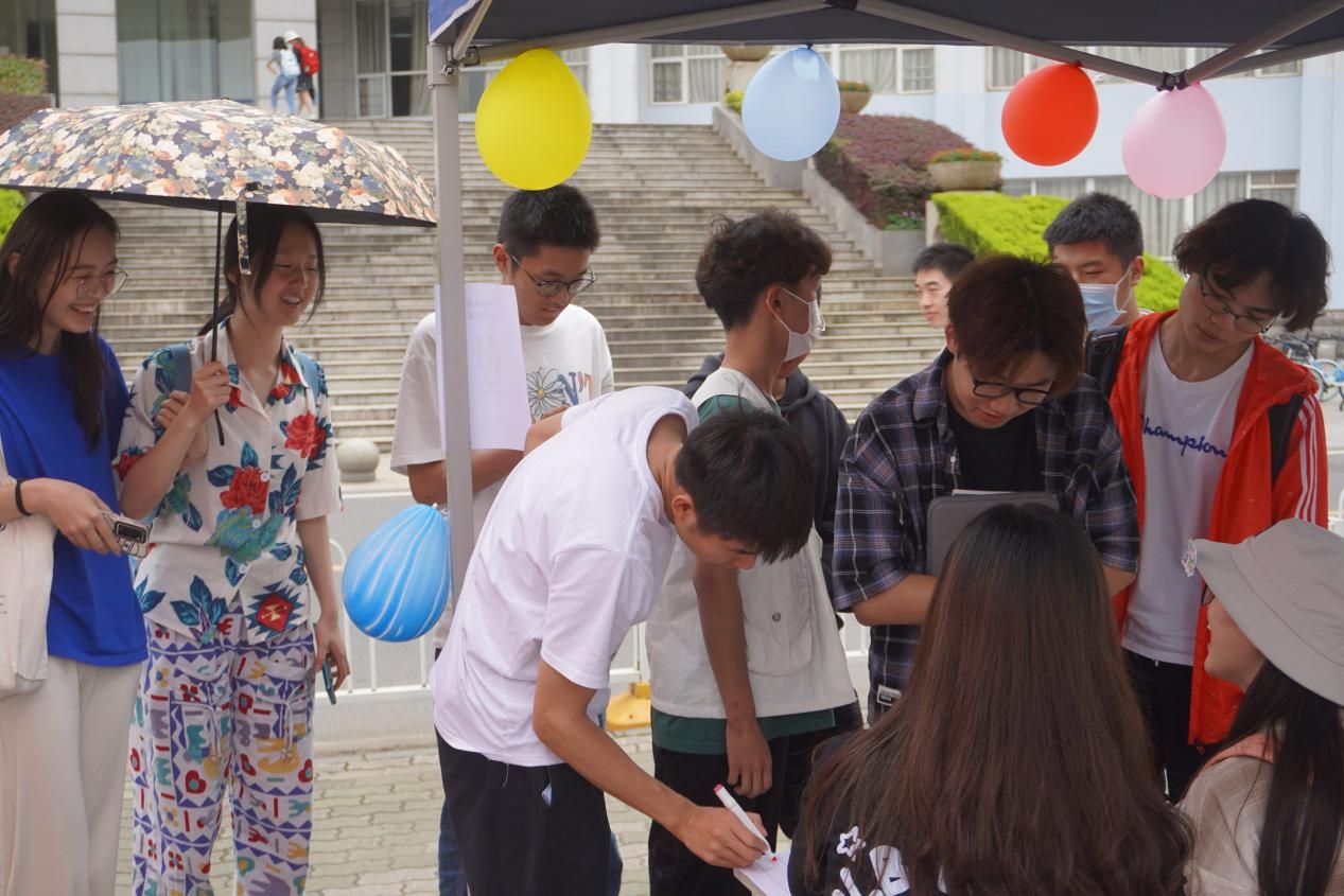 经过大家的努力,游园会取得了不错的效果。在12:15这个下课高峰时段,最高有四十余位体验者慕名而来,共同在帐篷外排起了长队。从12:00活动开始截止13:20,共有一百余位体验者前来体验游戏。其中最受欢迎的游戏是给“卷王”贴鼻子和打鸭鸭,这也从侧面说明了我校的同学们深受“内卷”的困扰,有着释放压力的需要。