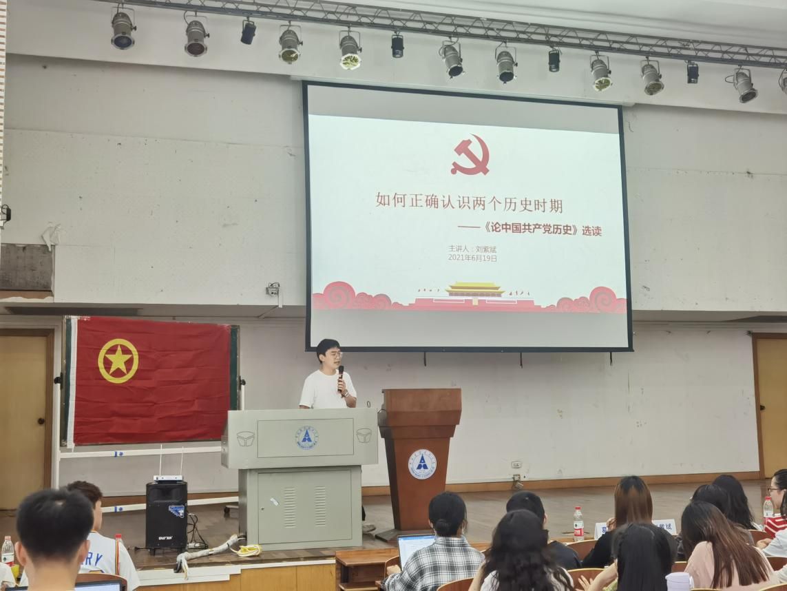 观影结束后,刘紫斌同学以《如何正确认识两个历史时期》为主题向青马班成员进行了授课。他指出,中国当下正值百年未有的大变局,树立正确的党史观,加强四史学习非常有必要。要坚持以我们党关于历史问题的两个决议和党中央有关精神为依据,准确把握党的历史发展主题主线、主流本质,正确认识和科学评价党史上的重大事件,要旗帜鲜明反对历史虚无主义,加强思想引导和理论辨析,更好正本清源、固本培元。接下来他为我们讲述了两个决议的内容和内涵,倡导学生骨干们深入学习和了解两个决议的内容,进行思考和辨析,提高自身思想觉悟。