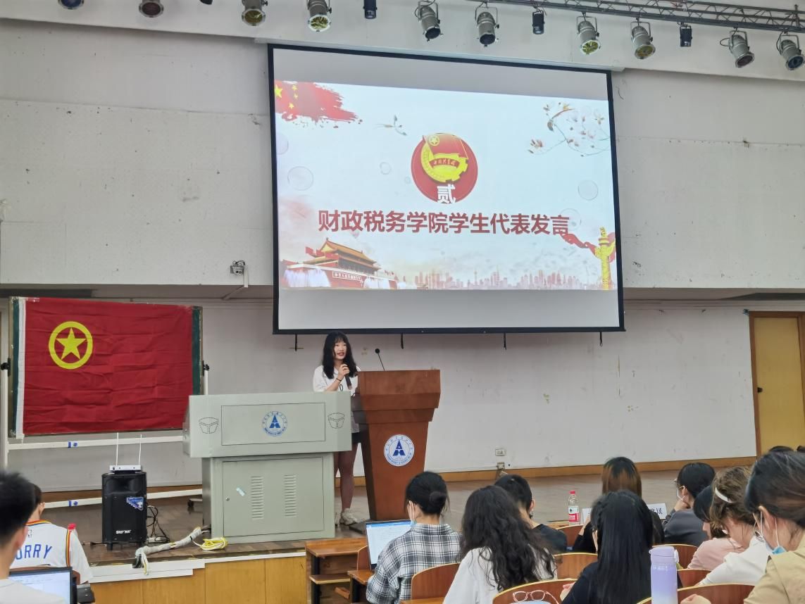 演唱结束后,财政税务学院学生代表葛竹欣发表了演讲,她提到:“为了让广大团干与学生深入学习,贯彻党的十九大精神与精神,高举中国特色社会主义精神,学校开办青年马克思主义培训班是非常有意义的。要用马克思主义以及习近平新时代中国特色社会主义新时代思想作为契机,引领提高学生骨干的思想水平,充分激发创新能力与创造能力。”青年团员,要用短暂的青春去学习无穷的智慧,通过实践去完成向一名合格的马克思主义者的蜕变,为祖国的繁荣昌盛贡献自己的一份力量。