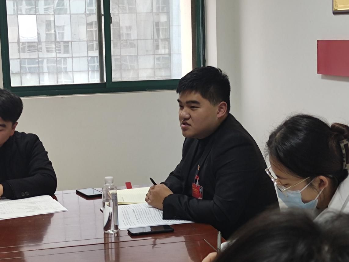 讨论第二项,郭老师就团省委领导讲话内容,向与会代表提问,请代表结合自身团学工作,谈谈所获所得。永利官网团代表曾昭阳对开幕式上团省委副书记陈立讲话精神的学习进行了心得分享。曾昭阳认为,结合陈立副书记对我校青年的期望,我们共青团工作要坚定不移的筑牢理想信念之基,他谈到了自己所在的校国旗护卫队,谈到自己在建党百年升旗仪式上作为一名扬旗手的光荣自豪。国旗护卫队是永利官网的一大特色,不仅在永利官网中发挥重大引领作用,也在学校范围内起着先锋模范作用,应该将此树立为永利官网一大特色品牌,打造主阵地和主媒体,发挥出更好的红色文化传承学习引领作用。贯彻落实以党建带团建,以国旗文化宣讲团为依托,大力弘扬国旗文化,深入阐述爱国主义精神,让青年群众入脑入心。