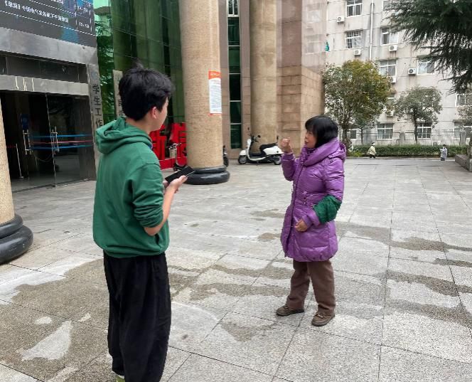 (图为刑司学院学生记者在对林阿姨进行采访)