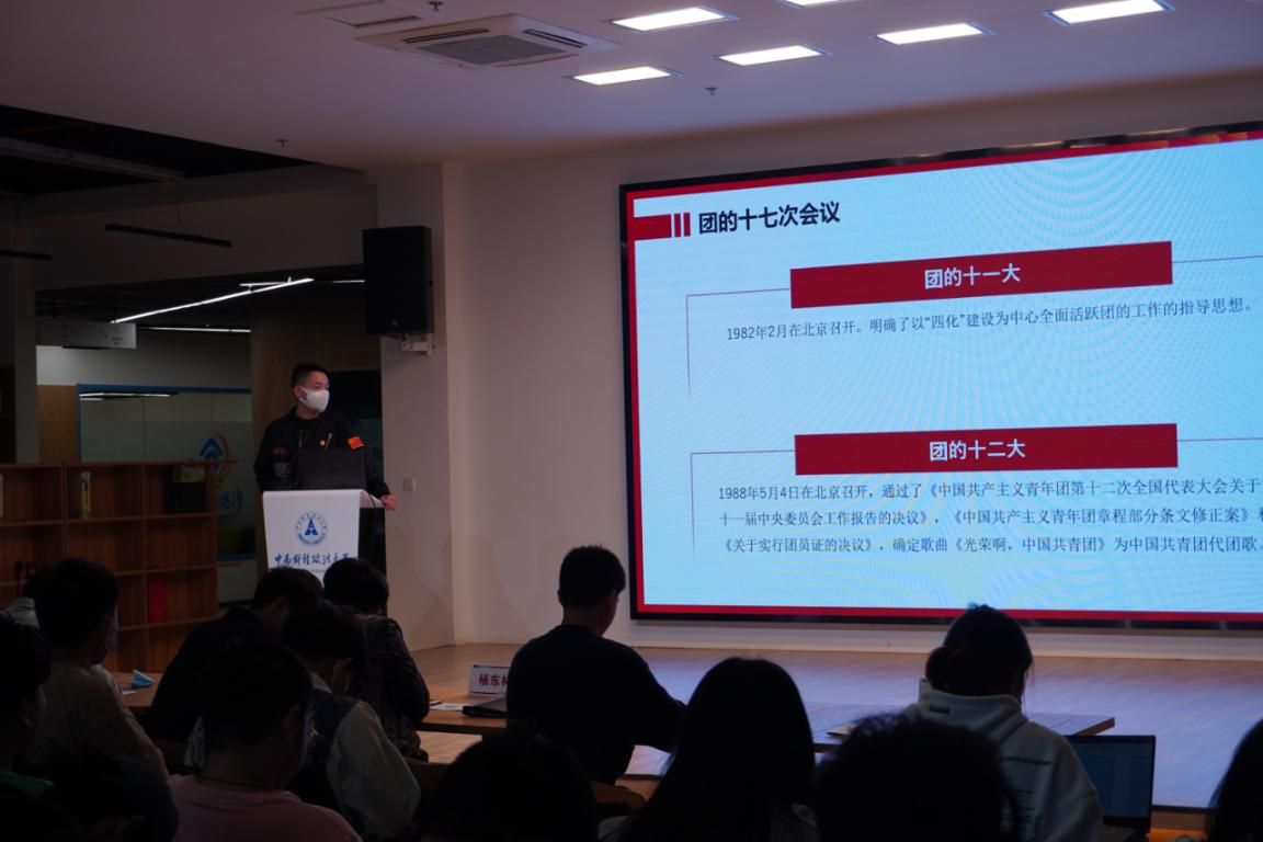 正值五四青年节到来之际,学生会主席团成员黄晓毅带来以“忆百年光辉历程,绽五四青春韶华”为主题的专题学习报告。报告以习近平总书记在中国人民大学考察时的重要讲话引入,介绍了中国共青团百年光荣发展史、奋斗史,并深刻思考了当代青年如何从百年团史中汲取前进动力,交出有份量的青春答卷。随后,学术实践部的韦超峰同学做专题学习报告,围绕什么是五四精神、学习五四精神的时代意义与当代青年如何继承与发扬五四精神,不辜负党的期望、人民期待、民族重托发表了自己的见解。学习分享结束后,在场同学就报告内容进行了热烈的讨论。