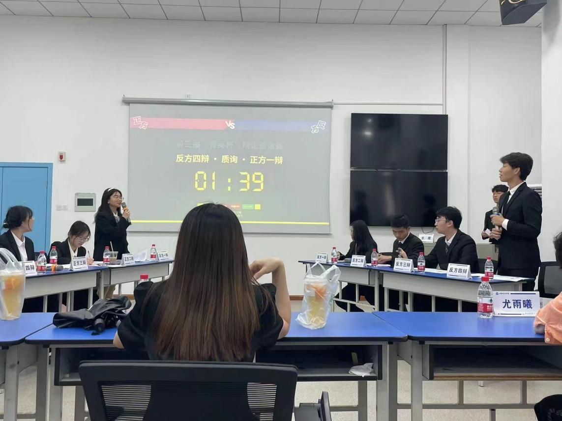 决赛由中韩新媒体学院团委副书记周白煜、校辩论队预备队长尤雨曦、哲学院辩论队20级队长张安琪作为评委。