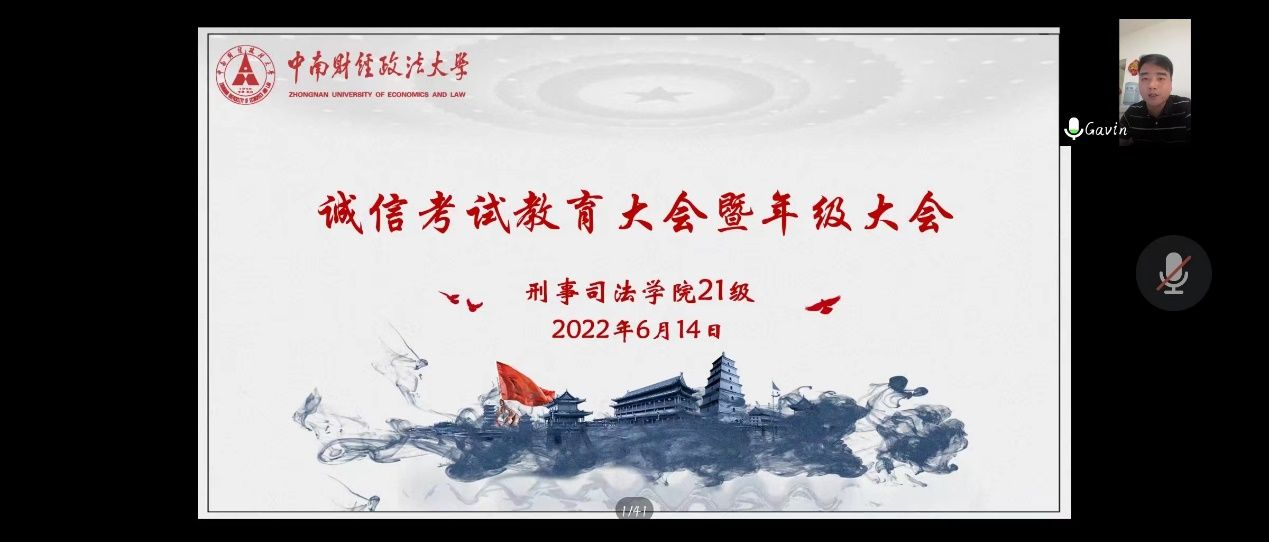 新闻网讯(通讯员 郭杨楠 陈淑娴)为弘扬诚信精神,加强同学们的诚信意识,确保同学们诚信应考、以积极乐观的心态面对期末考试,并为了让同学们有一个充实的暑假,永利集团88304官网于6月14日中午12点30分召开2021级本科生诚信考试教育会暨年级大会。此次大会以线上会议的形式召开,由2021级辅导员郭青川老师主持,永利集团88304官网2021级全体本科生参与。