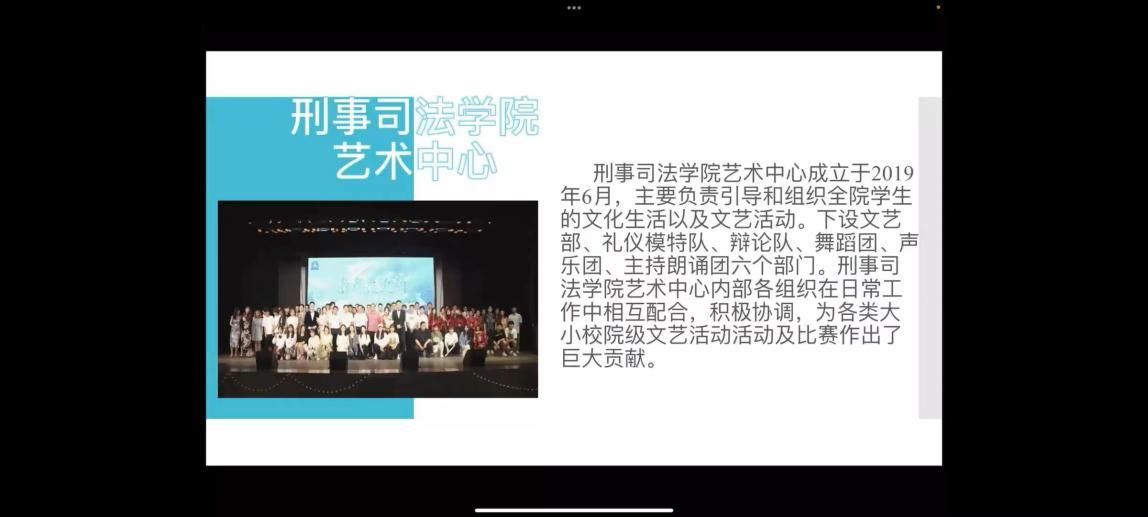 最后,院艺术中心按照文艺部、主持朗诵团、声乐团、舞蹈团、礼仪模特队、辩论队的顺序进行宣讲。永利官网艺术中心在永利官网党委团委的领导下,带领永利官网青年学生开展各类文体活动,丰富了青年学生们的大学生活,也展现了刑司学子对于艺术的追求和对于梦想的热爱。