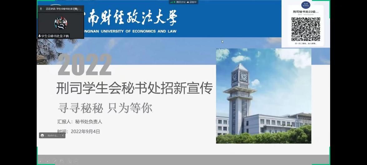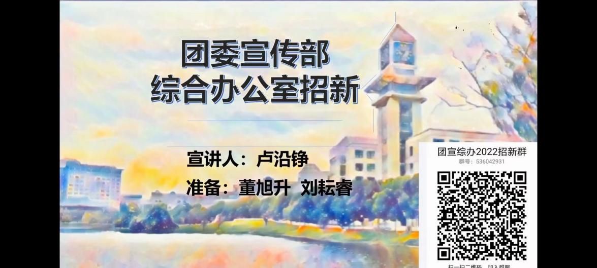 新闻网讯(学生记者 金雯星)风进帆满图新志,砥砺奋进正当时。值此二十大即将召开之际,永利集团88304官网分团委于2022年9月3日晚19:00,通过线上会议的形式,面向2022级新生召开了永利官网团学组织宣讲会,进一步了加深新同学们对学院团学组织的认识和理解,推动永利官网学生工作的发展。