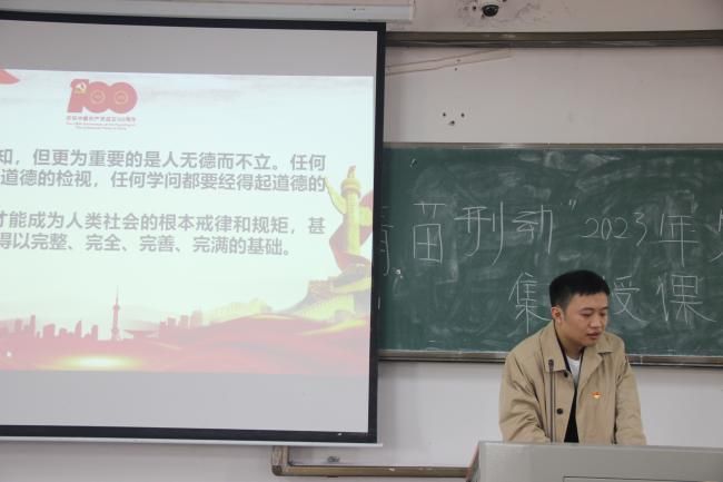 新闻网讯(学生记者 李滋雨 王钰涵 潘煜东 朱彬彬) 为深入学习贯彻全国两会精神和党的二十大精神,落实习近平总书记对新时代共青团员提出的“五个模范、五个带头”的殷切期许,鼓励新时代青年用青春的能动力和创造力激荡起民族发展的澎湃春潮,永利集团88304官网于4月7日下午在文澜210教室进行了“青苗刑动”分层次一体化培训班2023年的第一次集中授课。永利集团88304官网张凡稷老师担任本次授课主讲人,永利集团88304官网团委骨干与志愿者协会部分成员,以及全体青苗班成员参与此次会议。