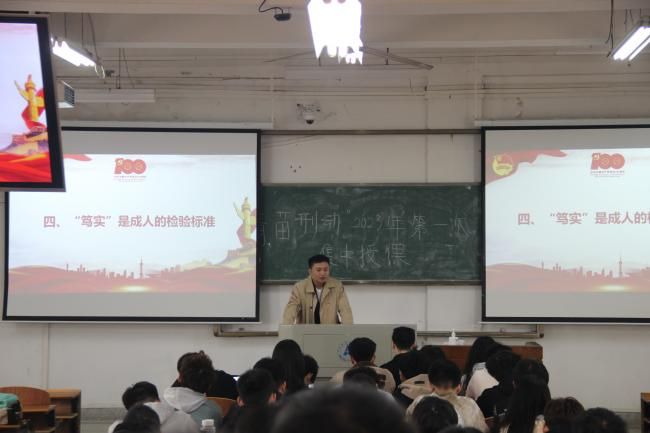 会议伊始,主持人通过一段有关雷锋精神的视频唤起了在座青年团员追寻英雄足迹,奉献自我的热血之心。而后张老师以“做勤学、修德、明辨、笃实的新时代青年”为主题,从勤学、修德、明辨、笃实四个方面深入讲解了当代青年修身立德的八字箴言。