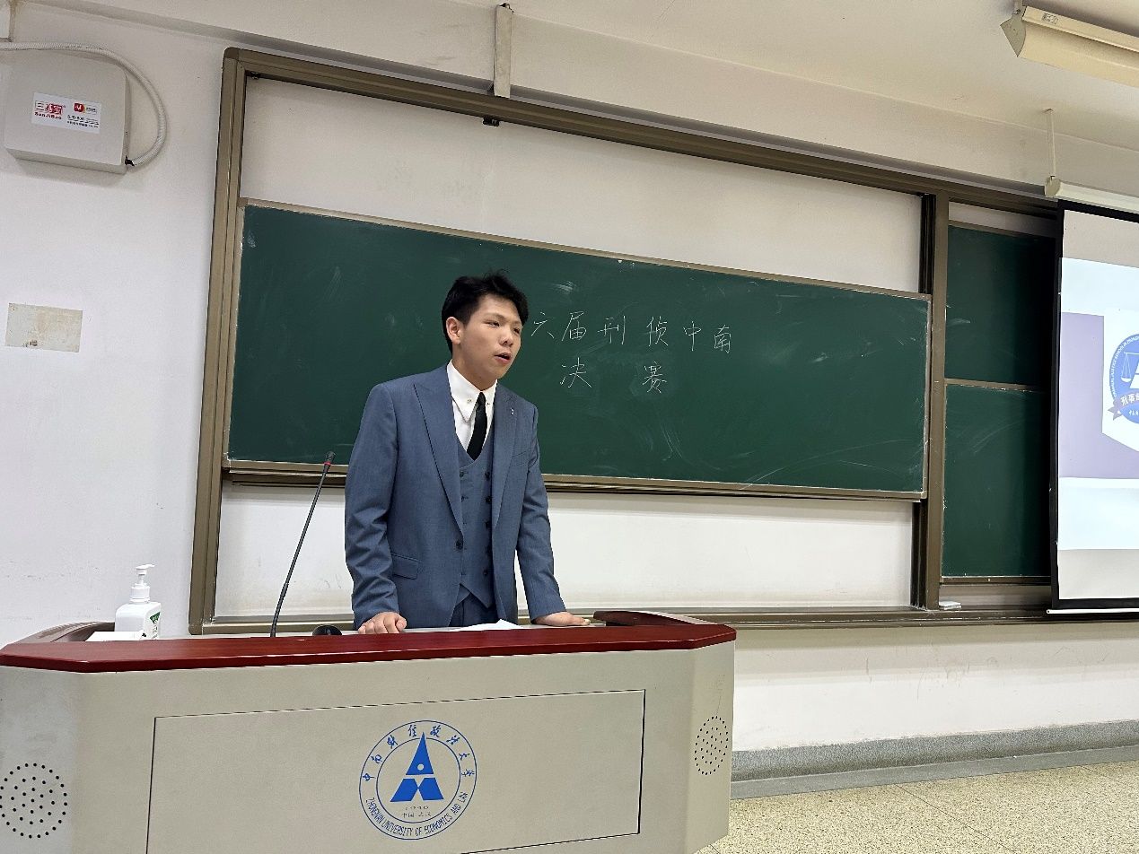 下午14时30分,大赛在文泰楼303室准时拉开帷幕,六支队伍的代表轮流上台进行成果展示与案情分析,同学们各展才华,表现优异。