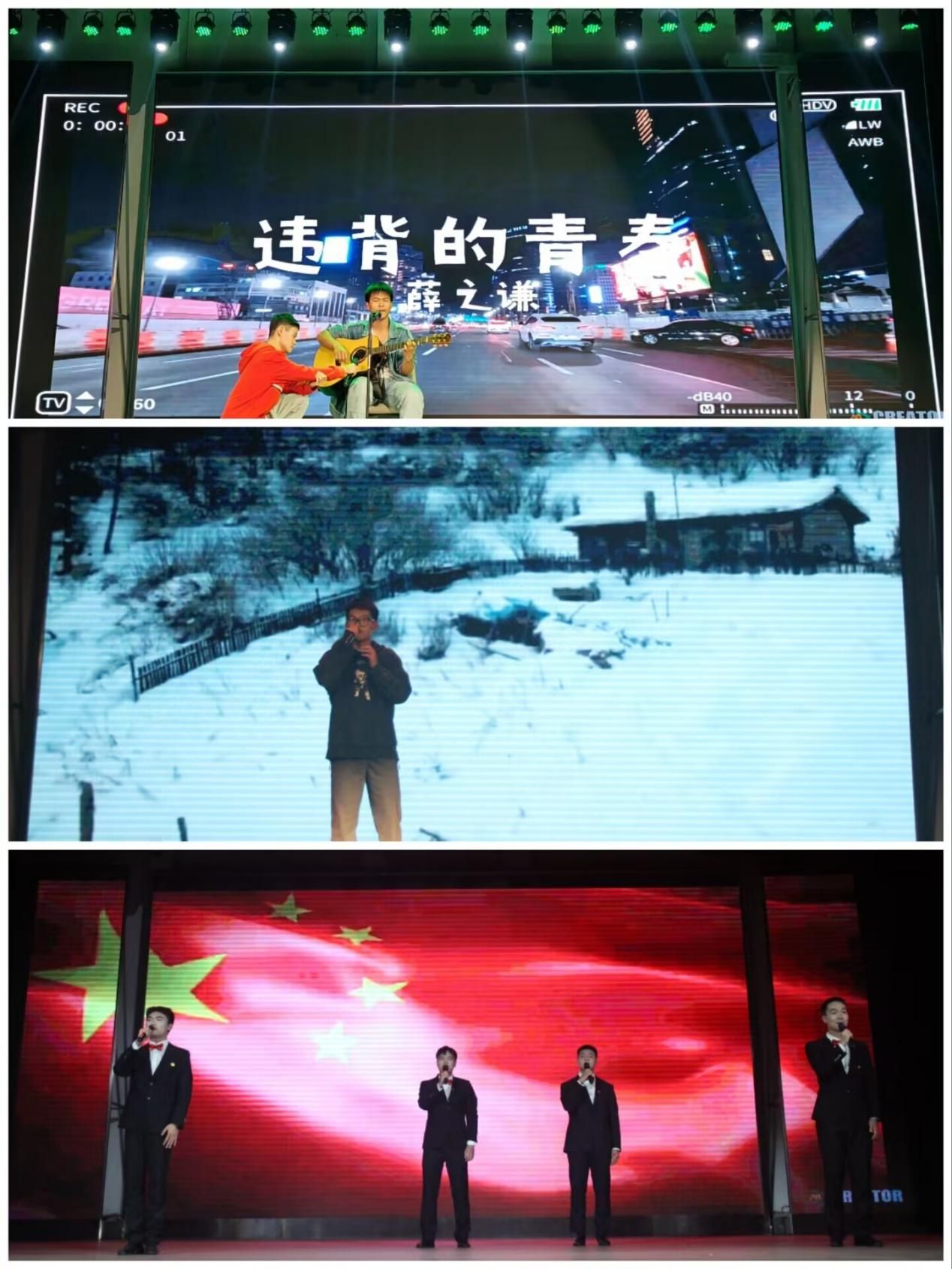 爵士舞《all night》将现场氛围烘托到又一个高潮。飘逸的长发,动感的舞姿,绚烂的灯光,歌舞之中,将青春自信的风采展现得淋漓尽致。随后,马晨阳一曲萨克斯独奏《猪猪侠》展现了经典与流行的完美碰撞。由主持朗诵团带来的《可爱的中国》朗诵溢出了浓浓的赤子之情,在字字铿锵有力的朗诵下,在场观众无不心潮澎湃,为之动容。最后,在晚会的尾声,民歌《南山南》与吉他弹唱《违背的青春》以悠扬的歌声作结,余音缭绕,沁人心脾。