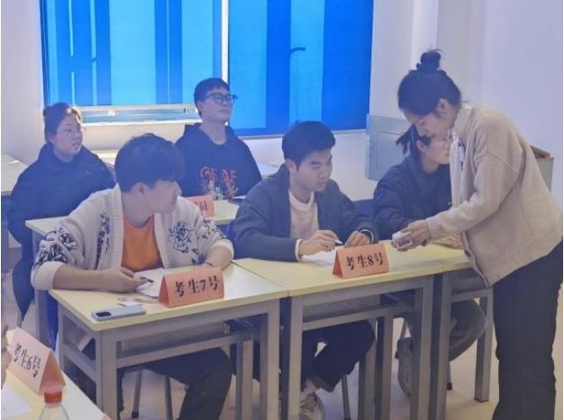 随后,主持人发放了讨论主题和答题要求,无领导小组讨论正式开始。此次模拟训练共有两道论述题,第一题要求第一组考生根据中老年人遭受网络诈骗的相关信息材料发表自己的看法,第二题要求第二组考生针对劣迹艺人的惩戒问题发表自己的观点。经过紧锣密鼓的准备,第一组考生分工明确,总体思路框架清晰,讨论时间把握准确,针对第一题的材料分别从问题、原因、对策建议三个方面进行了陈述总结。紧接着,第二组考生对第二题进行精彩陈述,成员们纷纷踊跃发言,展示了解决问题的多元视角,但未能合理控制自由讨论时间,在最后补充陈述时小组成员及时调整用时,精炼地表达了小组观点。