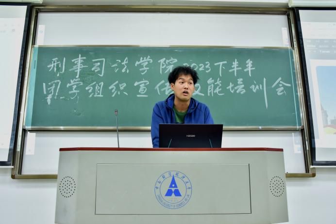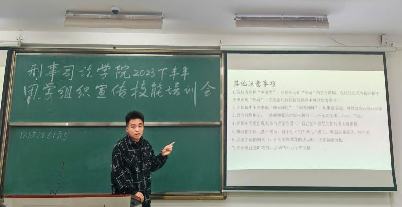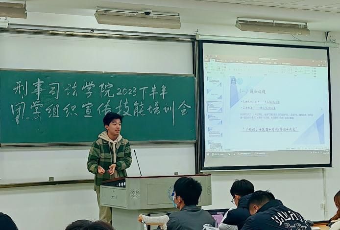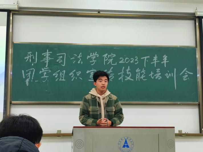 接着,喻宇轩同学以通知拟写为主题,从通知标题、抬头、首段、内容要点等方面,详细介绍了通知拟写的相关要求。他表示,各部门宣传干事们要加强规范,确保通知信息内容无误、格式正确,与学院中心工作实时对接,切实提高宣传信息工作水平。
