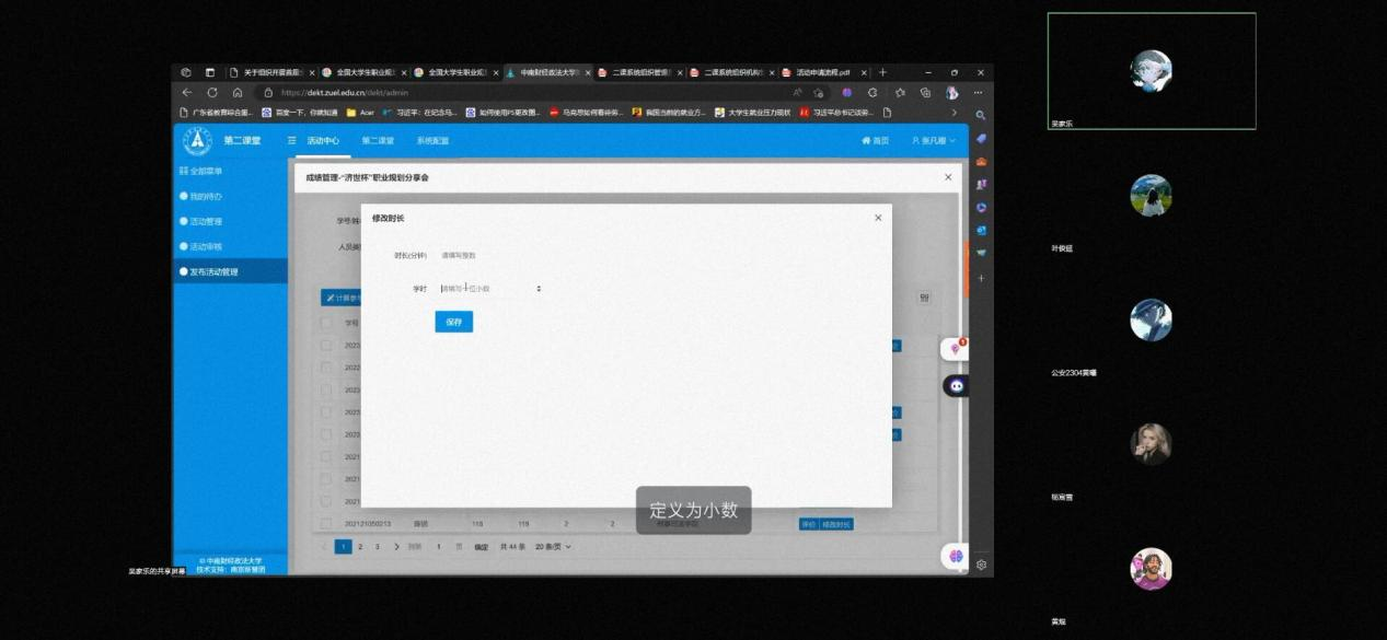 新闻网讯(学生通讯员 杨家伦 吴家乐)为进一步提高永利官网团学组织成员的工作能力和工作效率,加深同学们对第二课系统的理解,确保二课系统的顺利运行,2023年11月10号20点30分,永利集团88304官网2023年二课系统培训会于线上腾讯会议举行,永利官网全体团学组织干部均参加了本次活动。