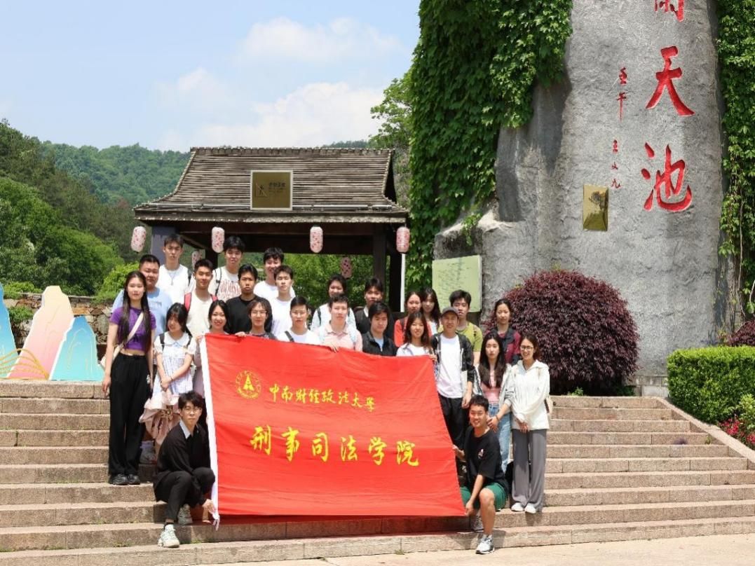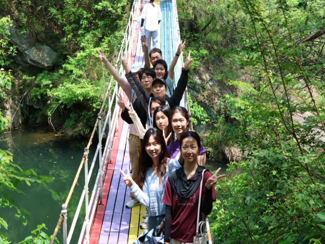 石门锁大别,天池秀木兰。活动开始,张凡稷向同学们简要介绍了景区的地理概况和景区背后的历史文化渊源,叮嘱了安全事项。随后,同学们开始了一天的徒步之旅。同学们在绚丽的彩虹栈道上合影,新奇地打量着山中独有的虫鸟植被、感受山中清澈冰凉的小溪,每个人都兴致勃勃、乐在其中。