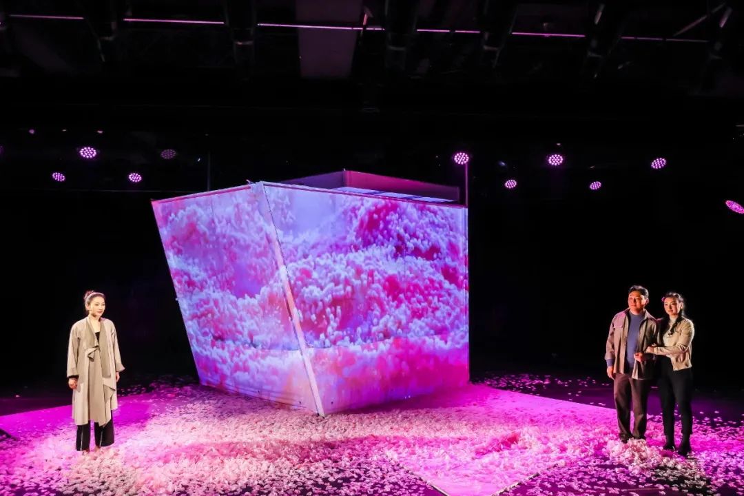 剧目结尾,漫天的粉色樱花降落,象征着熊春樱内心深处情感的彻底释放与释然。此时温暖明亮的灯光洒满了整个舞台,既是对女主角治愈之路的总结,也预示着寒夜终将过去,下一个充满希望的春天即将到来。散场后,同学们仍然意犹未尽,分享着他们的观演体验与思考感悟,表达着对话剧《春山如笑》的喜爱。大家纷纷表示,《春山如笑》是很治愈温馨的一部小剧场话剧,不仅视觉效果极佳,也在潜移默化间促进了自己的心灵成长。